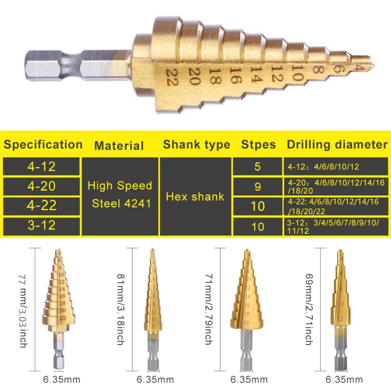 📏 These cutters come in various sizes, ranging from 3-12 mm (10 steps) to 4-32 mm (15 steps). The tool itself comes in different lengths to cater to your preferences.